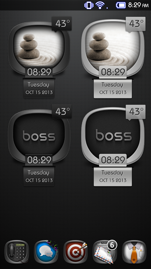 -------------------------------------------------------------------------------- DESCARGA --------------------------------------------------------------------------------- | | Mianogen - CM 11 CM 10.2 Theme v5.3.2 (Donate) FULL Mar 29th 2014, 13:30, by noreply@blogger.com (Mando Acosta) ★ INFO ★ ★ ★ Este es donado versión con más mejorar :) ★ ★ ★ ✔ Este tema funciona con AOKP/CM9/10/10.1 y soporta [XHDPI / IPAP] ========= ★ CÓMO ✔ Una vez descargado el tema, vaya a Configuración / Temas o Theme Manager ✔ Encuentre el Tema Mianogen y pulsa aplicarlo! ✔ Si usted recibe un mensaje de error: ✔ Aplicar el tema por defecto primero y luego reiniciar el sistema y aplicar el tema Mianogen y reiniciar de nuevo. ========= ★ ACERCA ✔ Este tema funciona plenamente con XHDPI y trabajar con IPAP! ★ ¿QUÉ CAMBIOS ¿? ? ✔ iconos de Nueva Google JFK y algo nuevo icono hecho por mí con el estilo de JFK! ✔ En general la nueva interfaz de usuario con clase ✔ aspecto limpio y sencillo ✔ Nuevos iconos del sistema para evitar la aburrida ✔ icono Nuevo Navbar ✔ Nueva barra de estado de notificación ✔ Nuevo gráfico Switch y alterna ✔ Ajus.Nuev.Predet Wallpaper ✔ Nueva interfaz de usuario de la cámara - más suave ✔ Paquete pequeño cambia mucho de su teléfono! ✔ temáticas aplicaciones como petición del usuario ~! Y muchos más, encontrará usted mismo ...! | | Boss _ UCCW Widgets Skin v1.4 FULL Mar 29th 2014, 13:25, by noreply@blogger.com (Mando Acosta) POR FAVOR LEA LA DESCRIPCIÓN COMPLETA ABAJO SI USTED ES NUEVO A UCCW _________________________________ Se requiere utilizar estos widgets: Último Custom Clock Widget (UCCW) (aplicación gratuita): http://goo.gl/yhWpuoY también recomiendo el uso de un lanzador que le permite a los widgets re-tamaño. _________________________________ Las características de esta piel: • Jefe temática para que coincida con los paquetes de iconos • 8 widgets reloj diferentes • 2 aparatos diferentes de calendario _________________________________ Cómo instalar: Asegúrese de "Fuentes desconocidas" se comprueba en Ajustes> Aplicaciones para Android (4.0 + ir a: Ajustes> Seguridad) 1. Este fondo UCCW viene con un instalador. Después de descargar UCCW y esta piel, abrir la aplicación (esta piel) 2. Haga clic en el botón debajo del icono de 'Piel Instalar ". 3. Cuando se le preguntó para reemplazar la aplicación, haga clic en 'Aceptar' y proceda con la instalación. 4. La piel se instalará y se reemplazará el instalador. _________________________________ Cómo colocar el widget: 1. Después de la instalación, colocar un Widget UCCW en la pantalla. 2. Aparecerá un panel con una lista completa de todos los Reproductores UCCW. Nota: Skins descargados de Play Store sólo se muestran aquí. 3. Haga clic en el widget que desea colocar en la pantalla de la lista. HECHO! | |