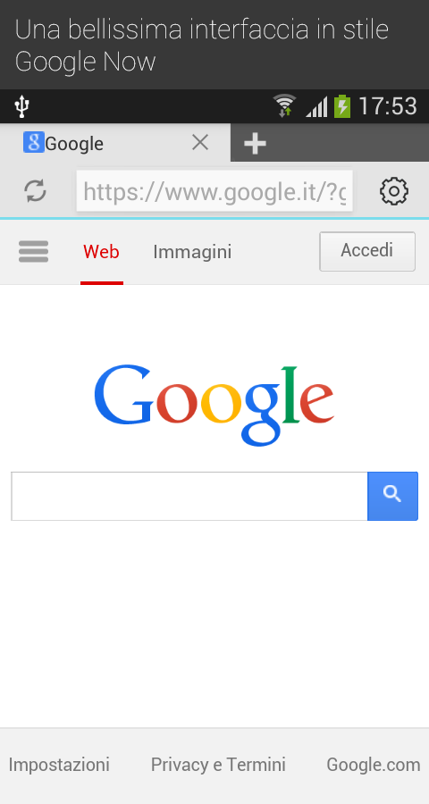 Un completo navegador, tan pesado como un archivo de texto, en un estilo gráfico moderno Google Ahora,
