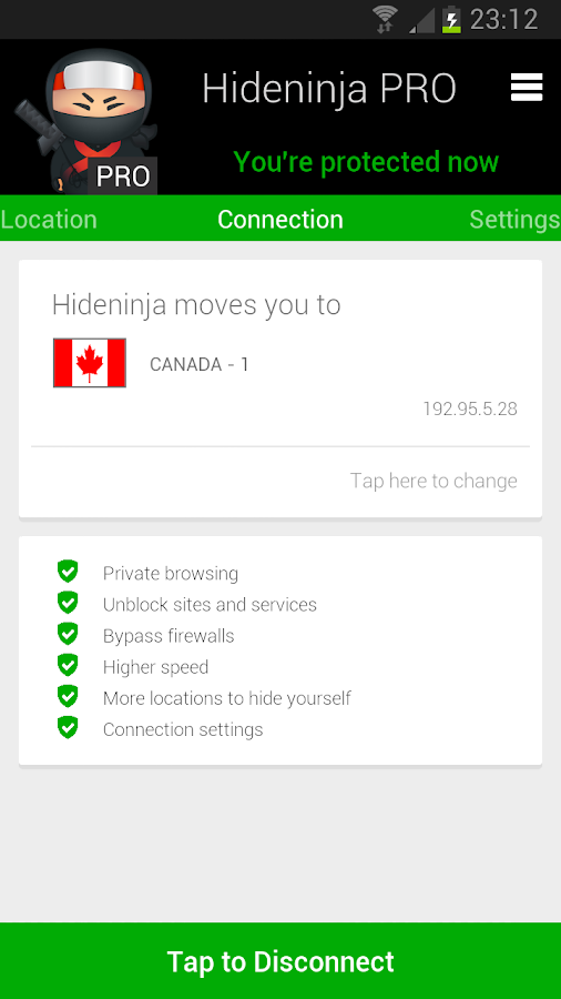 El VPN más rápido para Android, la versión completa PRO de Hideninja VPN. Proteja su privacidad en línea, desbloquear sitios donde se encuentre. Seguro y navegación privada, proteger su identidad y la propiedad intelectual.