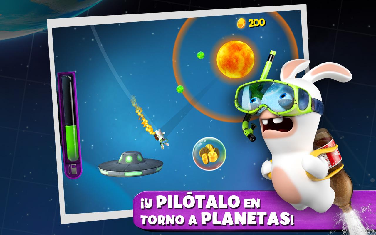 *Rebota con patitos espaciales, dale a las vacas del espacio o estampa tu Rabbid contra el sol.