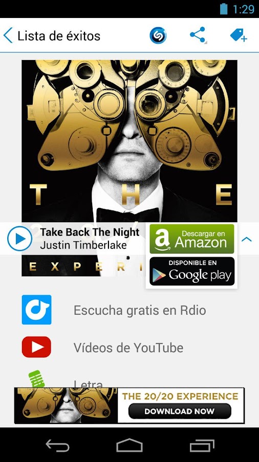 ○ Compartir lo que shazameas en Twitter, Facebook y Google+