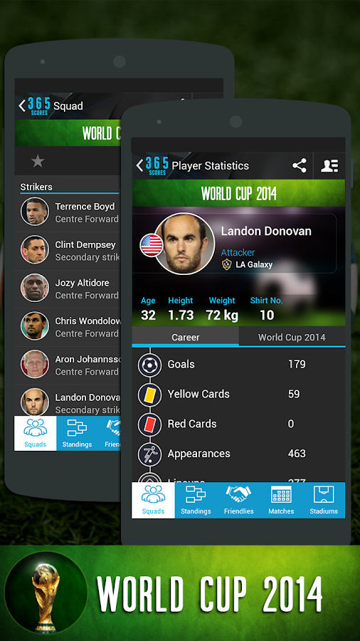 Bienvenidos a Brasil 2014 Edición Especial! Tenemos todos los resultados en vivo, Notificaciones Push, Resultados, Videos, Mesas y posiciones, y los máximos goleadores. Puede que no seas en Brasil para el Mundial, pero toda la acción aquí en 365Scores! La cobertura más profunda de la Copa del Mundo a su alcance, con los horarios de los partidos completos incluyendo kick off veces. Echa un vistazo a los escuadrones de los partidos con estadísticas de los jugadores completos, incluyendo sus estadísticas Brasil 2014. Tabla de posiciones del torneo completo para que pueda ver quién está jugando su equipo la próxima! Echa un vistazo a todos los estadios de la Copa Mundial, incluyendo la ubicación, fotos y estadísticas. Además de todo eso, por supuesto, obtener todas las notificaciones de goles y videos de la forma esperada en 365Scores aplicación.Elige tus equipos y ligas favoritas para crear su propio canal Sport incluyendo todos los puntajes, clasificaciones, noticias deportivas, mensajes de twitter y las luces. Todo en un solo lugar con una experiencia única.Miles de diferentes ligas y deportes de todo el mundo: la NFL, el Super Bowl; MBL; NHL; NBA; Bundesliga, Serie A, La Liga, Champions League, Copa del Mundo, Wimbledon y mucho más. Aplicación deporte de mayor clasificación en Google Play!CARACTERÍSTICAS● Sección Especial Copa del Mundo!● la guía de televisión deportiva en vivo - Sepa exactamente en qué canales de televisión se puede ver su juego!● PERSONALIZADA resultados deportivos, noticias deportivas agregada, alertas y videos en tiempo real.● notificación de inserción más rápida con actualizaciones en tiempo real de sus equipos y ligas preferidas.● Vea el video de la meta 5 minutos después de que suceda.● Obtenga todas sus noticias deportivas de sus sitios deportivos locales favoritos en un solo lugar.● Todos los eventos del juego, estadísticas de los partidos en vivo, alineaciones y Vídeos Gol.● Tablas y Accesorios en vivo.Notificaciones push ● Completamente personalizables, definen por la liga, juego o evento (meta, momento del aterrizaje, tarjeta amarilla, tenis servir romper etc.)APOYA 10 deportes diferentes:Fútbol, tenis, baloncesto, hockey sobre hielo, béisbol, voleibol, balonmano, fútbol americano, rugby y de críquet.Disfruta de más de 10,000 equipos de todo el mundo:Broncos, Seahawks, Mets, el Arsenal, el Manchester United, el Manchester City, Chelsea, Liverpool, Tottenham, Real Madrid, Barcelona, Ajaxn, AC Milan, Juventus, PSG, Bayern Munich, Borussia Dortmund, Galatasaray, Boston Celtics, Orlando Magic, Los Angeles Lakers y más.Y más de un 1.000 LIGAS:La Liga, Copa, Champions League, Serie A, la UEFA, la Bundesliga, Playoffs de la NBA, Roland Garros, Wimbledon, Copa Davis, Grand Slam, NFL, NBA, MLB, NHL, NCAA, MLS y mucho más!Tweets de tus jugadores favoritos:David Beckham, Oscar, Fernando Torres, Carlos Tévez, Wayne Rooney, Olivier Giroud, Wojciech Szczesny, Demba Ba, Frank Lampard, Gareth Bale, James Milner, Glen Johnson, Eden Hazard, Sergio Agüero, Per Mertesacker, Lionel Messi, Cristiano Ronaldo, Mesut Özil, Robert Lewandowski, Didier Drogba, Kaká, David Villa, Thomas Müller, Arjen Robben, Cesc Fábregas, Wenger, Benítez, LeBron James, Shaquille O'Neil, Dwyane Wade, Kevin Durant, Dwight Howard, Lamar Odom, Carmelo Anthony, Paul Pierce, Kobe Bryant, Pau Gasol, Rafael Nadal, Serena Williams, Novak Djokovic, Andy Murray, Juan Martín del Potro, Andy Roddick y mucho más!CADA EQUIPO CUBIERTO PARA LA COPA DEL MUNDO:Brasil, España, Inglaterra, Italia, Portugal, Argentina, Alemania, Holanda, Francia, Uruguay, Bélgica, Rusia, Ghana, EE.UU., México, Croacia, Camerún, Chile, Australia, Colombia, Grecia, Costa de Marfil, Japón, Costa Rica, Suiza, Ecuador, Honduras, Bosnia-Herzegovina, Irán, Nigeria, República de Corea y Argelia