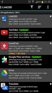 Link2SD es un gestor de aplicaciones que hace que sea fácil para Android 2.0 + usuarios mover aplicaciones a la tarjeta SD, para limpiar todos los archivos de caché de las aplicaciones . Le permite gestionar sus aplicaciones y el almacenamiento fácilmente.