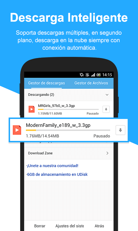 - Escribir Almacenamiento externo: permite el ahorro de los medios de comunicación a la tarjeta SD