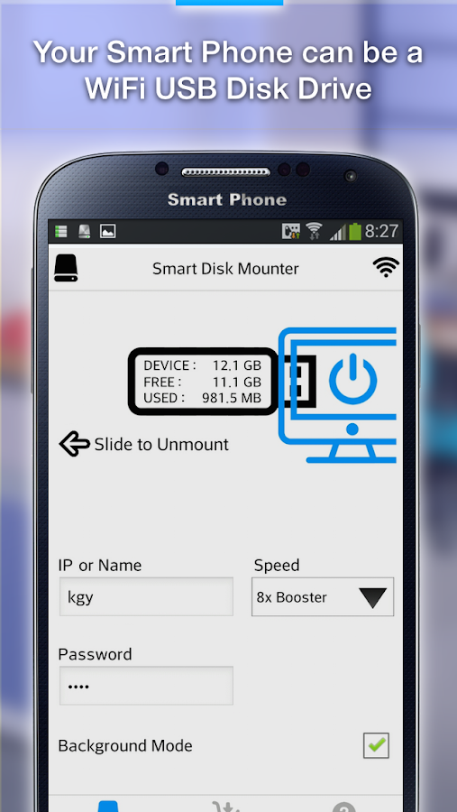 Mientras tanto, te sientes difícil en el ahorro y el uso de datos en el teléfono inteligente. Al instalar el disco Mounter inteligente, el teléfono inteligente se convierte en el dispositivo ideal para guardar los datos a través de Wi-Fi mucho mejor que la memoria USB.
