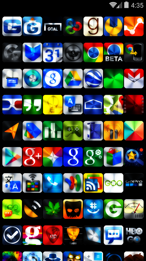 GO Launcher no soporta la función de máscara de icono de este paquete de iconos, iconos de modo que no se incluyen aparecerá distorsionada. Para corregir esto, abra las preferencias GO Launcher> Configuración de Visual> Iconos> y desactive la opción de Mostrar icono Base.