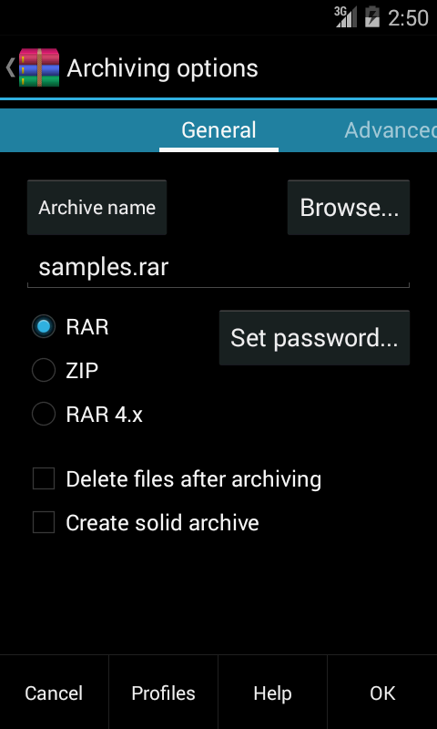 RAR para Android puede crear archivos RAR y ZIP y descomprimir archivos RAR, ZIP, TAR, GZ, BZ2, XZ, 7z, ISO y ARJ. La lista de funciones incluye reparación de archivos ZIP y RAR dañados, pruebas de velocidad compatibles com WinRAR de RARLAB, registro de recuperación, los volumenes habituales y de recuperación, cifrado, archivos sólidos, utilización de múltiples nucleos de CPU para comprimir datos.