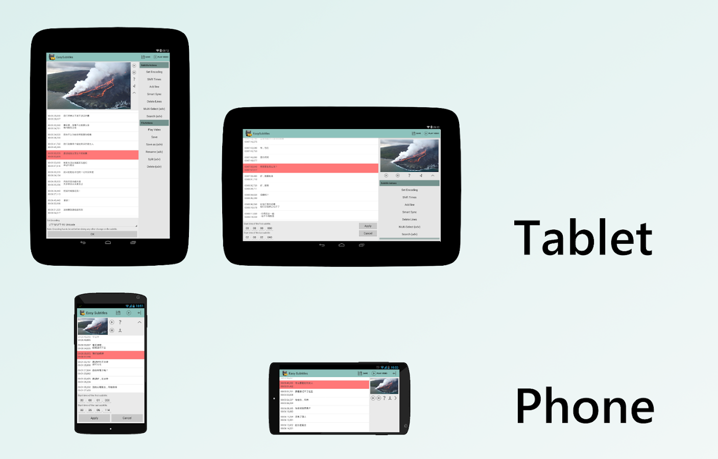 Algunos videos no han incorporado subtítulos, entonces los subtítulos pueden ser proporcionados en archivos de subtítulos separados (. Srt,. Ssa,. Culo). Con Easy Subtitles puede modificar fácilmente sus archivos de subtítulos para asegurarse de que los subtítulos están en perfecta sintonía con sus videos.