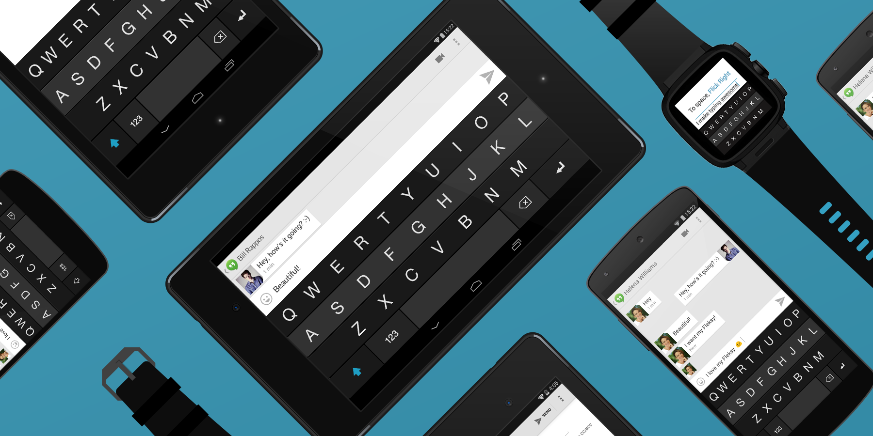 Fleksy es un nuevo teclado revolucionario , basado en la tecnología pendiente de patente que permite escribir en cualquier dispositivo rápido, preciso y tan fácil se puede escribir sin mirar siquiera .
